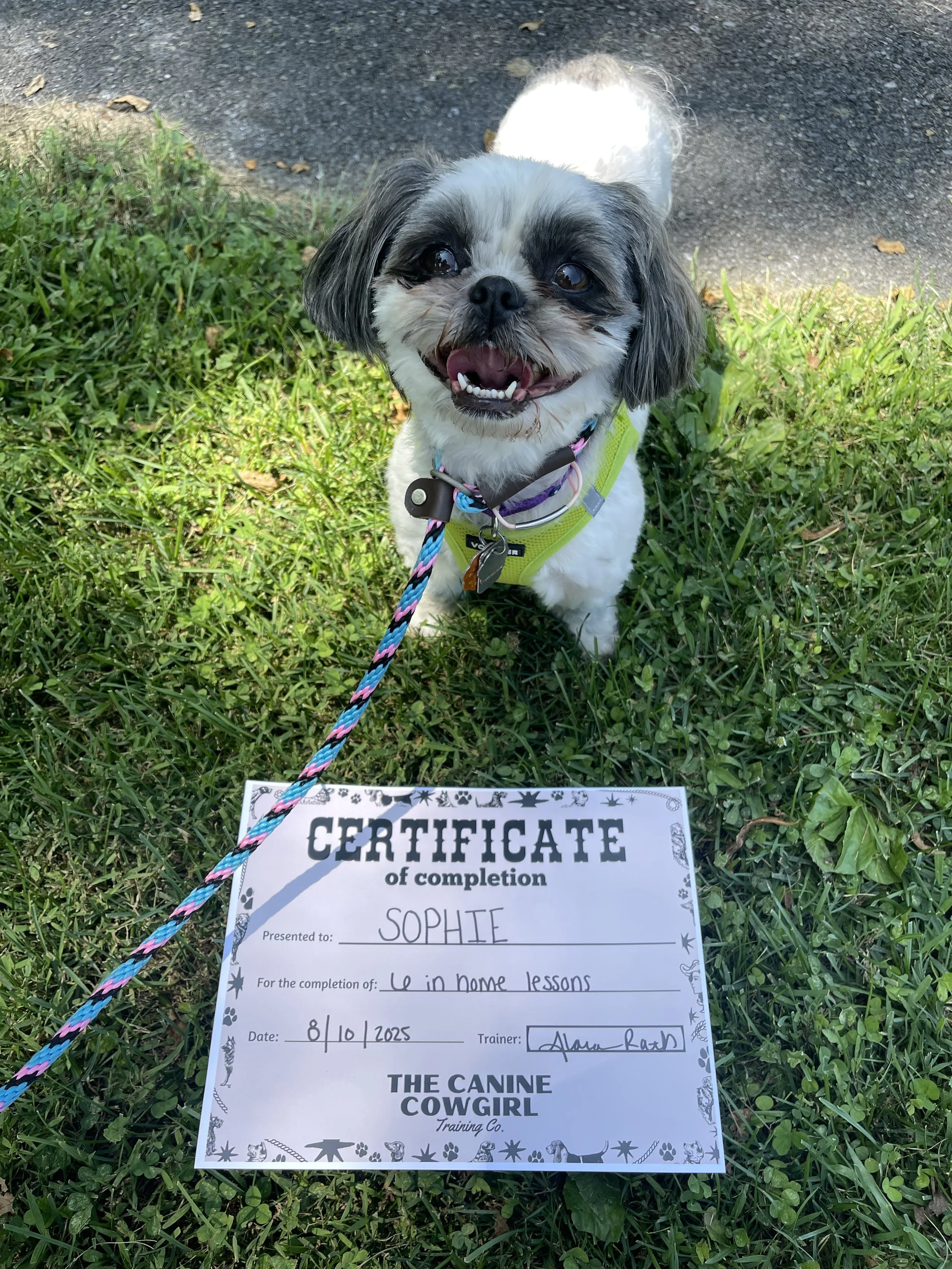 “My Shih tzu is a reactive dog and walks have been challenging at times. We worked with Alana to overcome these challenges and there is improvement! She can sit calmly while people walk by and cars drive by. Alana is patient and encouraging. I’m grateful for her program. Definitely recommend her programs!”
