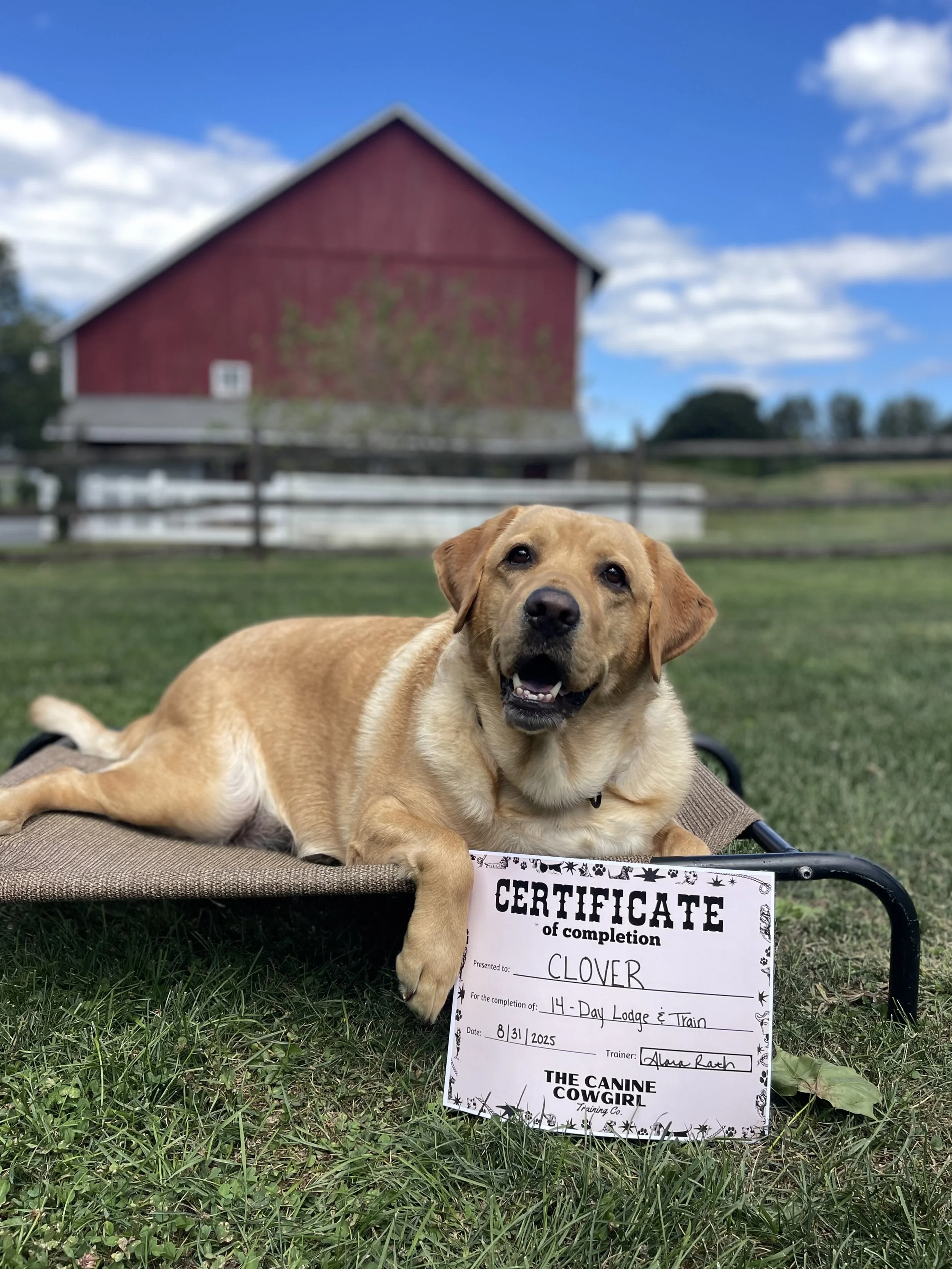 “We can't thank Alana enough for everything she has done for our family. She didn't just train our dog Clover, but she completely changed our whole family's relationship with her! Everyone including the grandkids (ages one to thirteen) can now pet her without her jumping on them or barking at them. We can take her out without getting pulled out the door and down the steps! Clover knew the basic commands but would not hold them and with Alana's two week lodge and train everything has changed. Her gentle, persistent, positive reinforcement approach helped Clover make the changes she needed. Sending Clover to Alana was the best decision we ever made for Clover and our family! Thank you Alana!” —Margaret B.